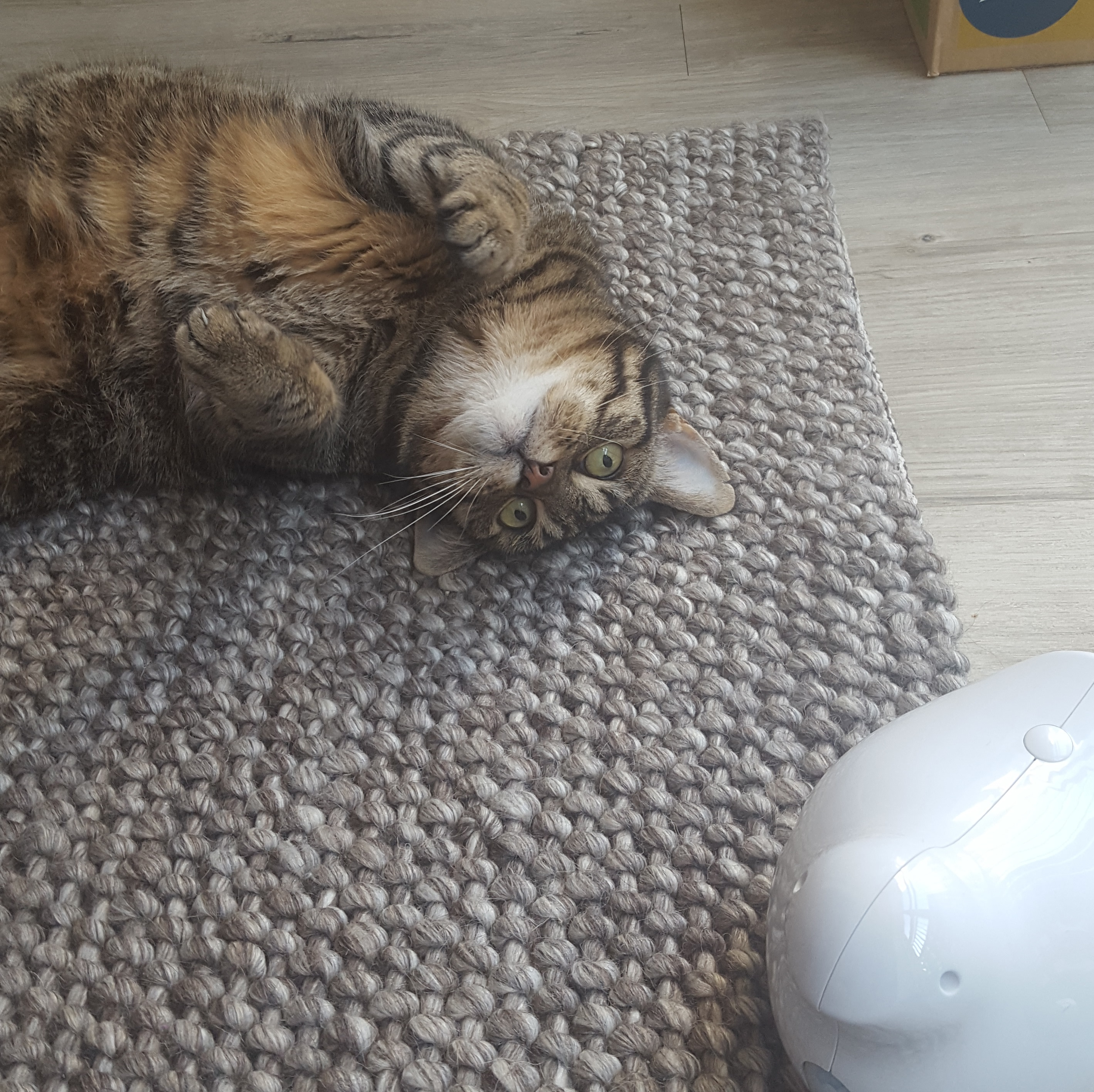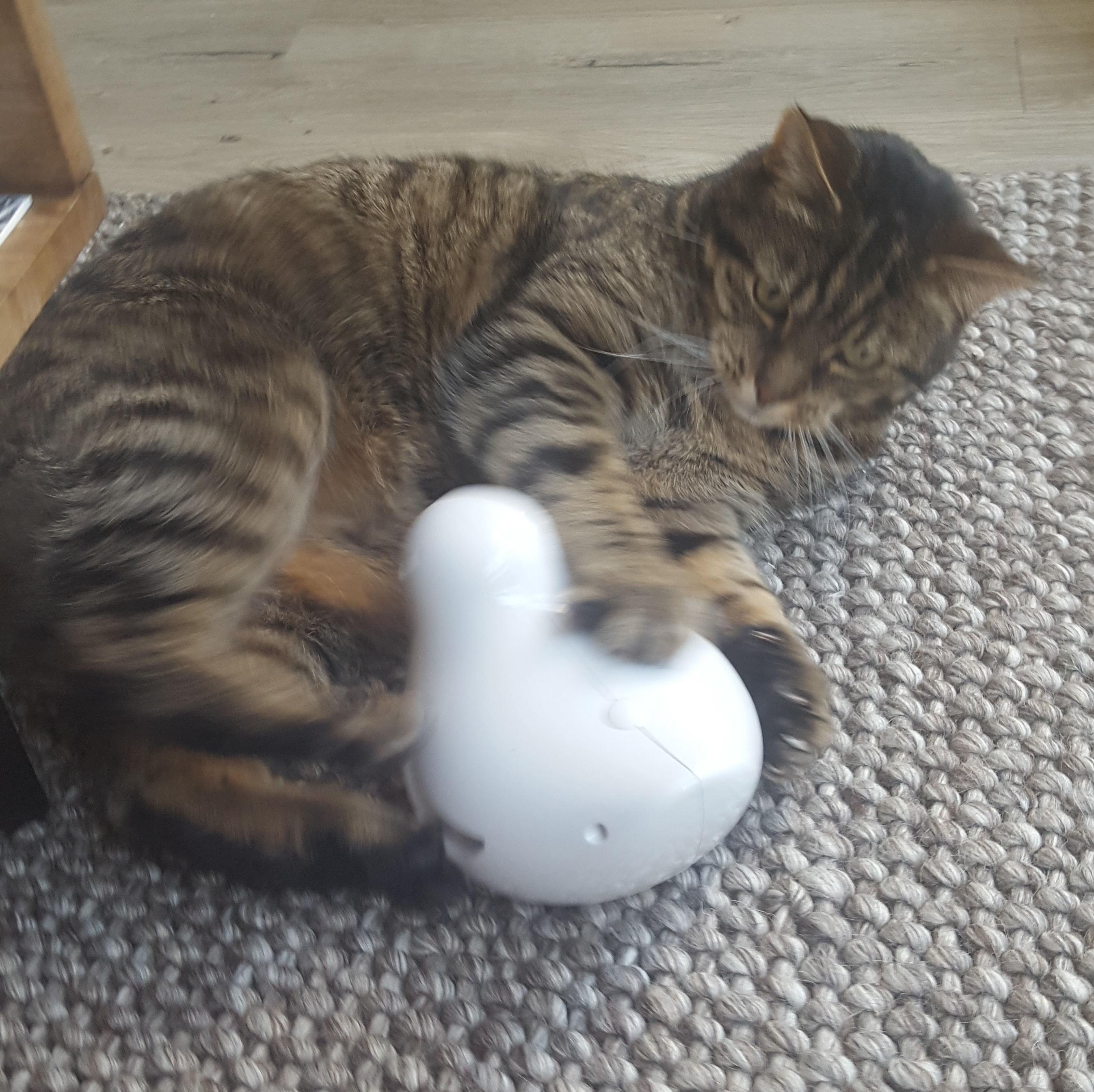 A play session lasts for 10 minutes after which the toy switches off automatically. You can also activate and ‘all day’ mode. The toy then switches on for 10 minutes at a time every two hours. Even better: it also switches on when the sensor picks up movement from your cat. Basically, your cat will have a toy that switches on whenever they want to play! I absolutely love that idea.