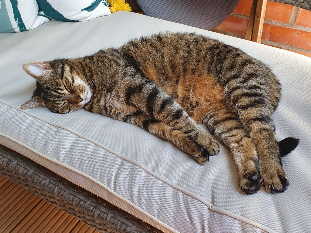 Intrigued by his paw preference I started looking into research about domestic cats and left- or right-pawedness and found a very interesting research paper on this topic. Obviously, food was involved in testing the cats as participation needs to be rewarding for them too 😉 However, even that could not convince all cats to participate as 3 out of 41 cats tested did not move a paw at all. Of the other 38 cats, 10 were right-pawed, 12 left-pawed and 16 were ambilateral: they showed no preference for either left or right paw.
