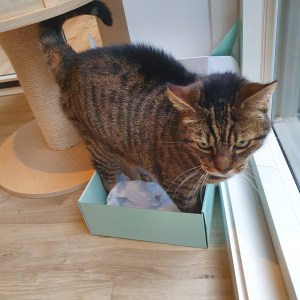 Last, but not least if you ask Dirk, the box itself is a gift for the cat as well – even if he does not quite fit inside….