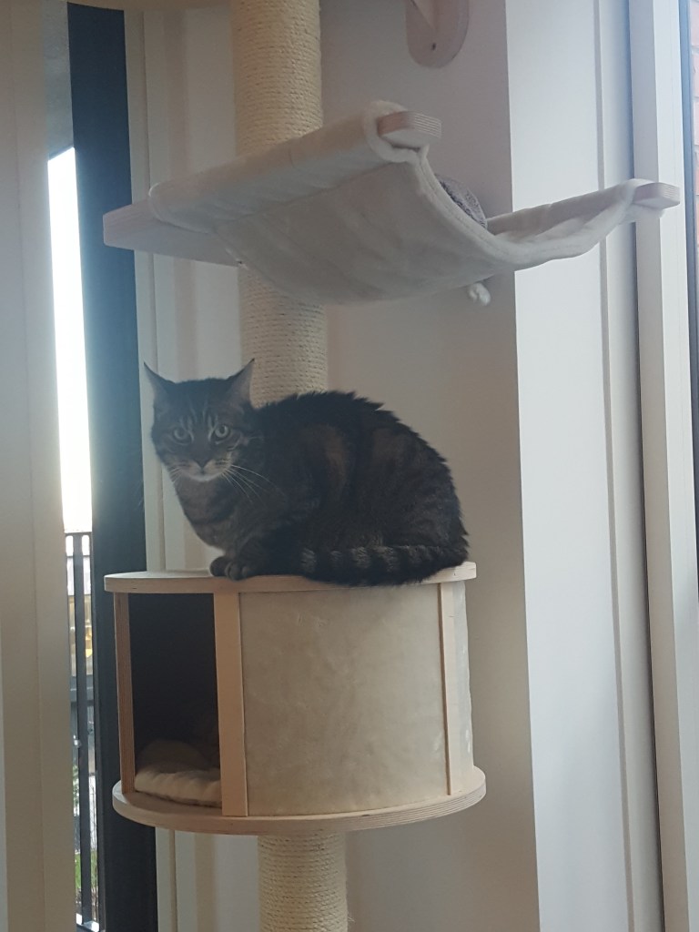 I loved this scratching barrel, it looked very sleek and had levels inside so Dirk could climb inside and hide. Dirk loved sleeping in it, but hardly ever used it as a scratching post. He still used the carpets, sofa and chairs instead…